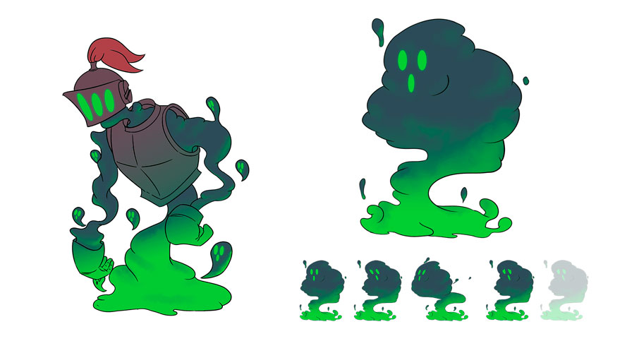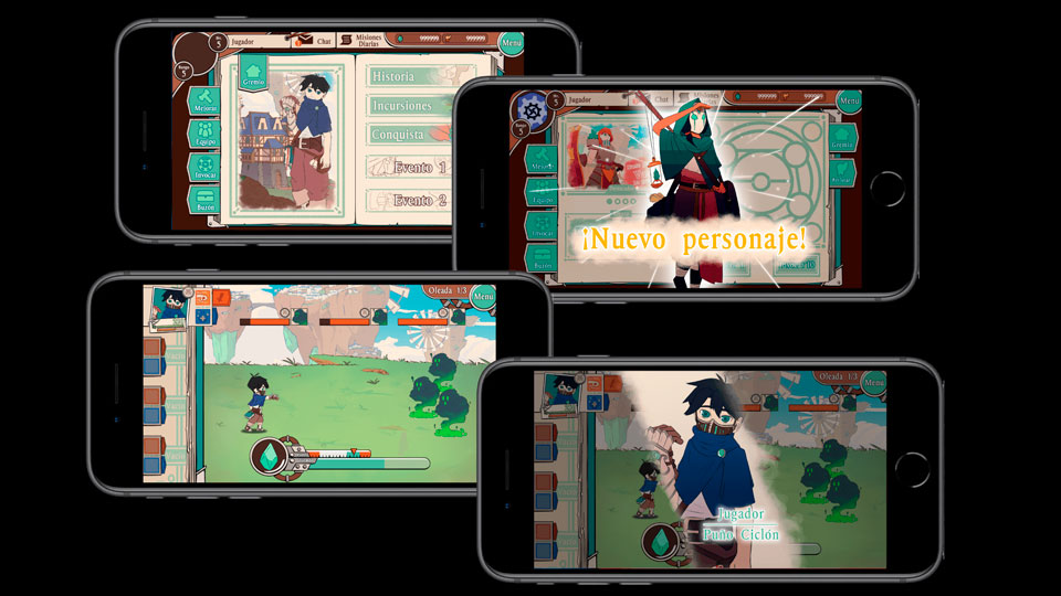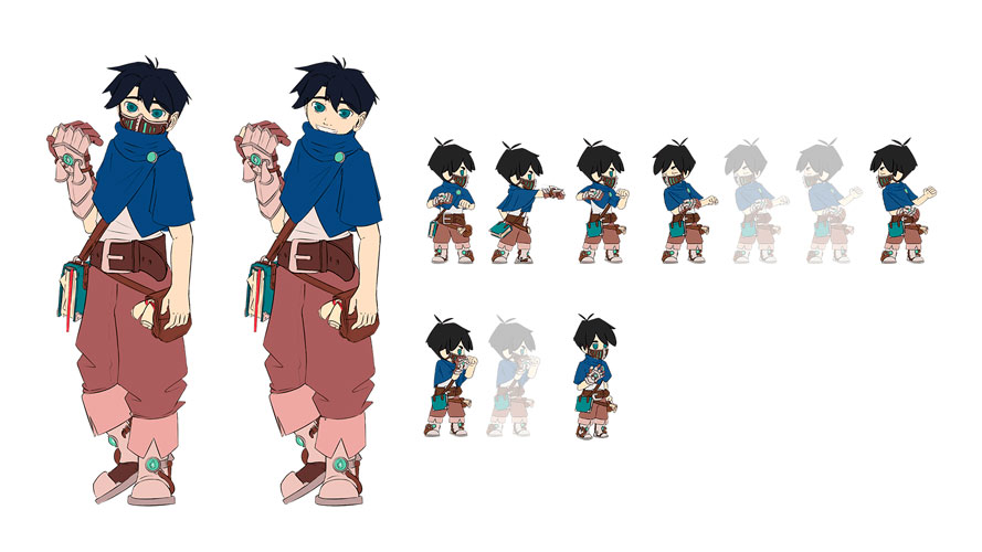 4 characters were design in order to exemplify the style of each region, as well as a main character and enemy, both with their respective animations to be implemented into the prototype.