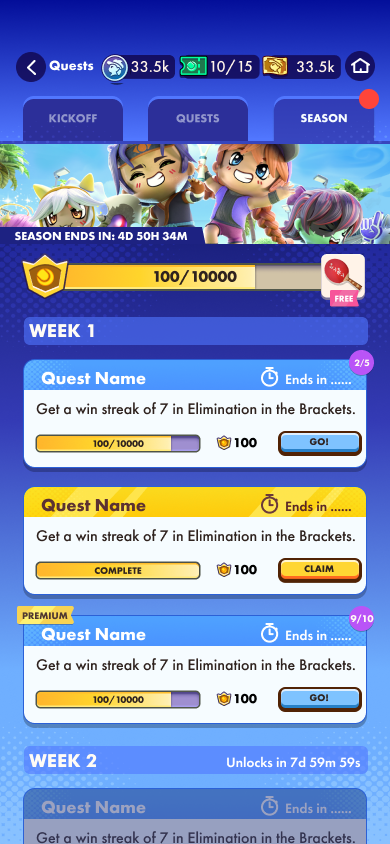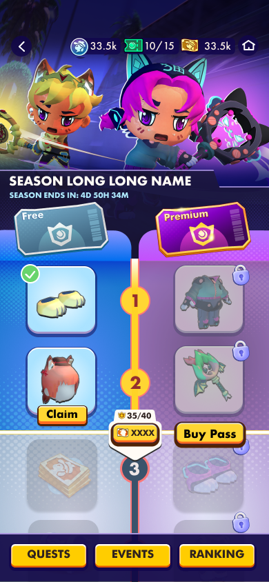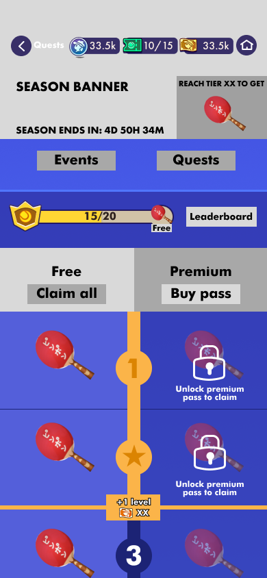 My work also consisted in creating the layout and visual design for new features, such as this battle pass for example: