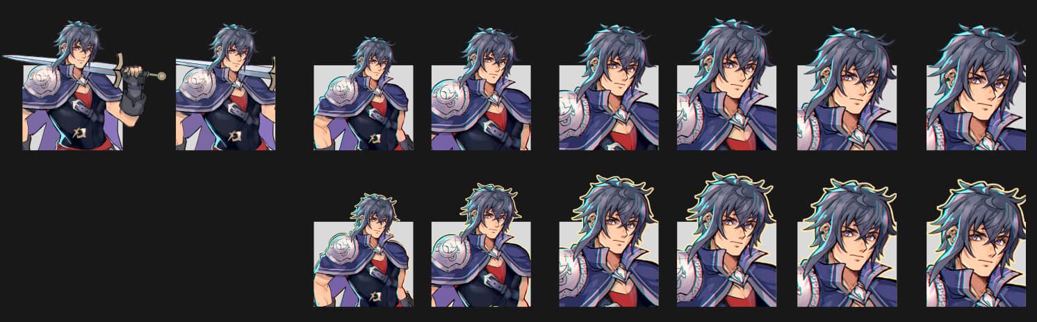 Starting with the character portraits, i did an iterative exploration process, focused on finding the correct visual style choices based on our general styleguide. All the options that weren't picked could then be used for other components of the UI, either as is or as a starting point.